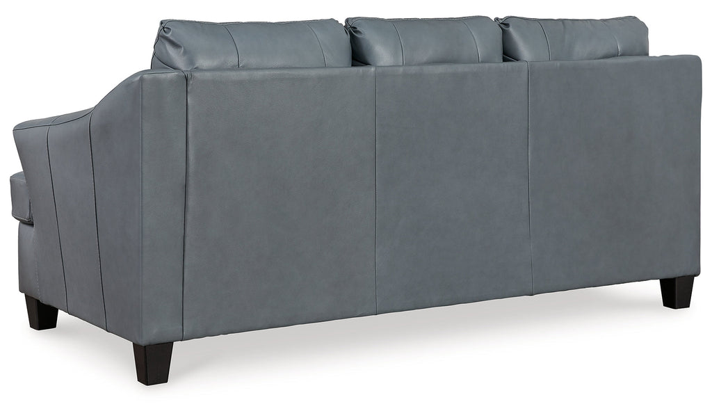 - Genuine leather typically covers inside areas such as the back, seat and arm cushions; skillfully matched faux leather covers the remaining areas