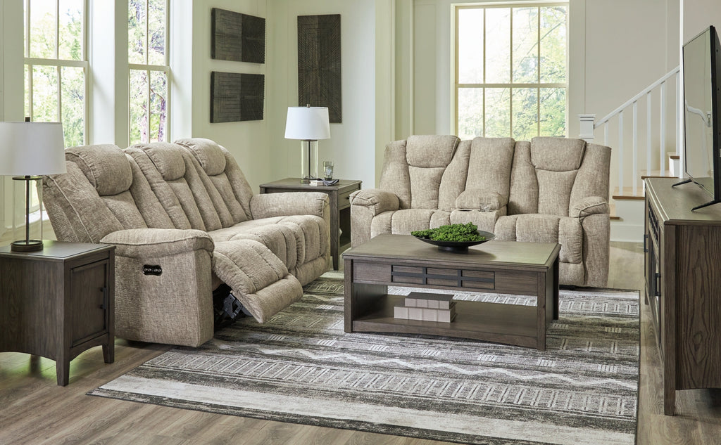 Change can be a good thing—especially when it takes lounging to a whole new level. Covered in high-pile fabric with rich tonal variation, this power seating package cradles you in comfort. And if it’s ambiance and connection you’re after, the set sports a blue LED backlight and USB charging to complete the experience.