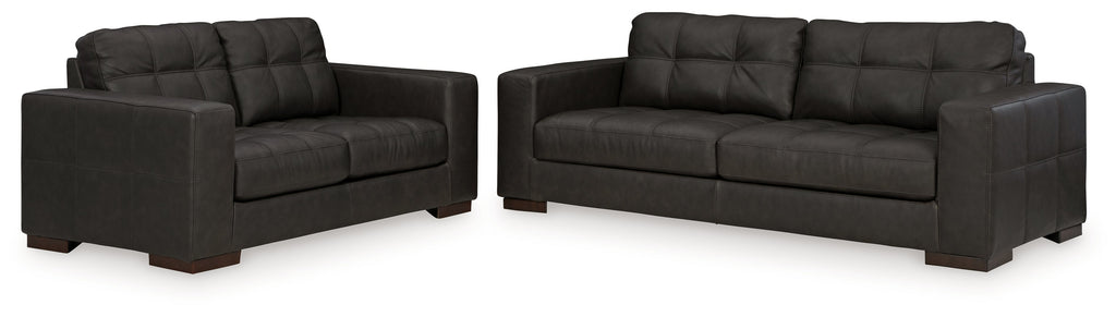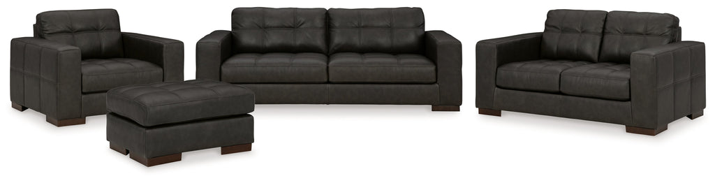 Casual and contemporary, the Luigi seating package suits those with a keen eye for everyday luxury. Its expertly matched leather and faux leather upholstery is filled with depth and dimension, incorporating an inviting sense of masculine character. With tufting details and linear silhouettes solidifying the set's chill vibe, all that’s left to do is sit back and relax.