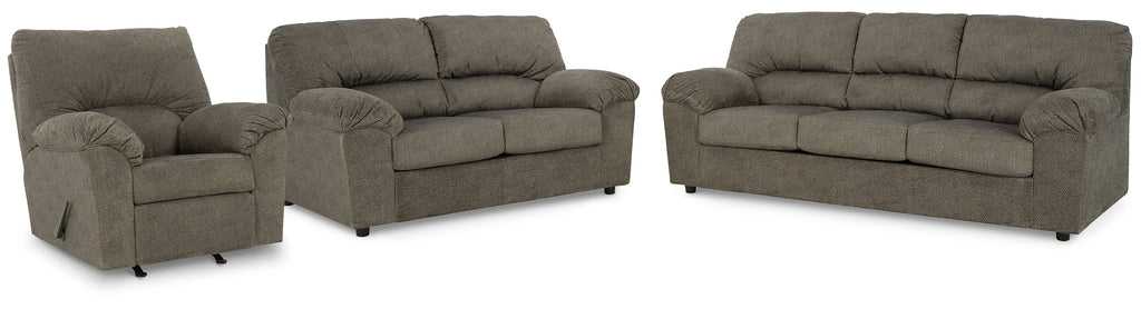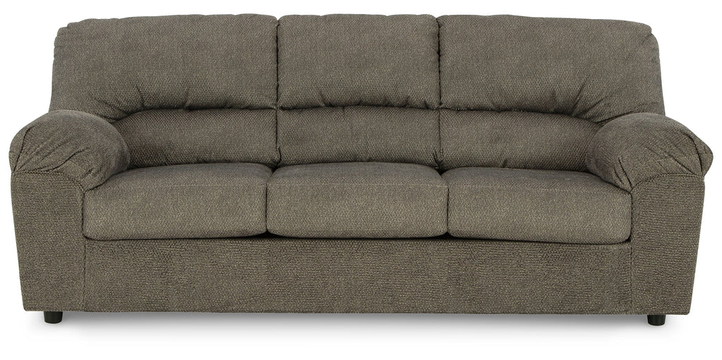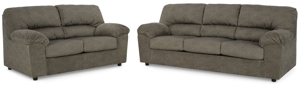 Looking for a peaceful retreat? This sofa and loveseat package is at your service. Its super plush padding and substantial pillowtop armrests make for an easy getaway. The subtle warm taupe hue and pleasantly soft texture are so appealing that you won’t want to leave.