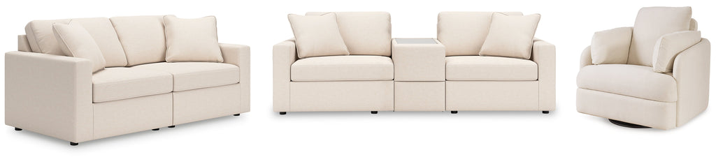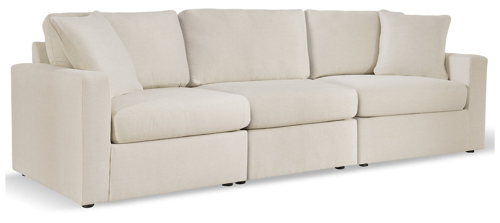 - Includes 3 modular pieces: left-arm facing corner chair, armless chair and right-arm facing corner chair