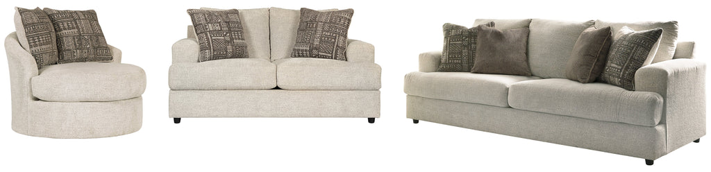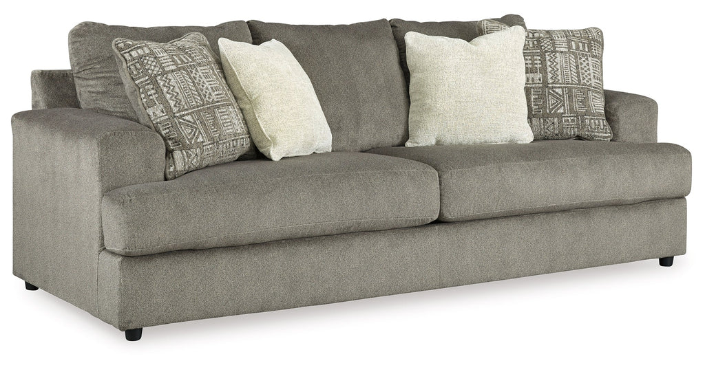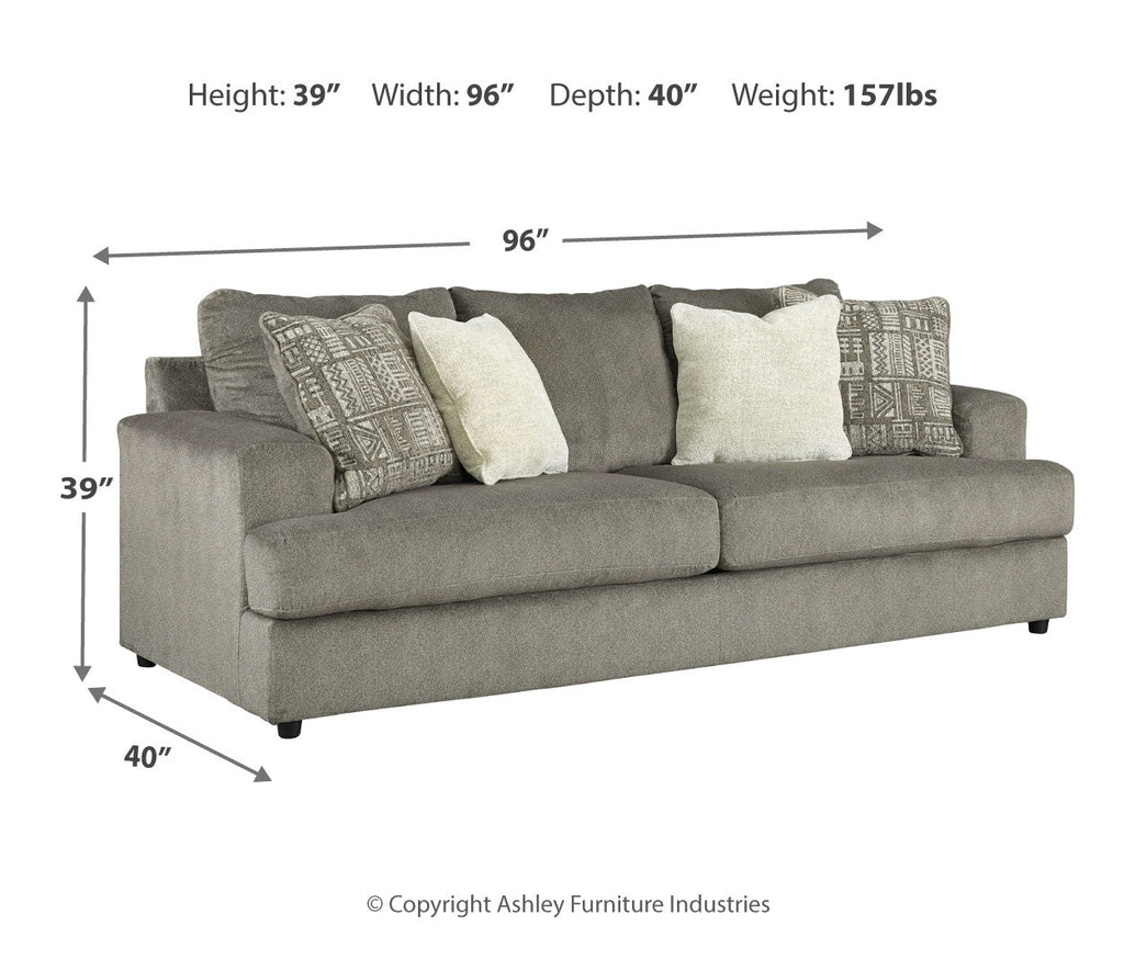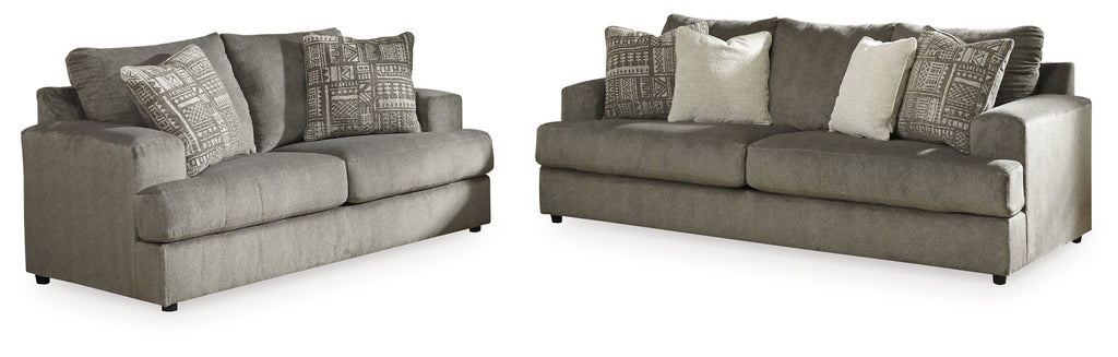 Flaunting a trendsetting silhouette, this sofa and loveseat put the contemporary in your contemporary home. Its “three over two” profile eliminates the center seat cushion, giving you elongated plushness and deep seating. Microfiber fabric satisfies your need for pieces that feel as good as they look. Accented with soft jacquard chenille throw pillows for a splash of geometric pattern and color contrast.