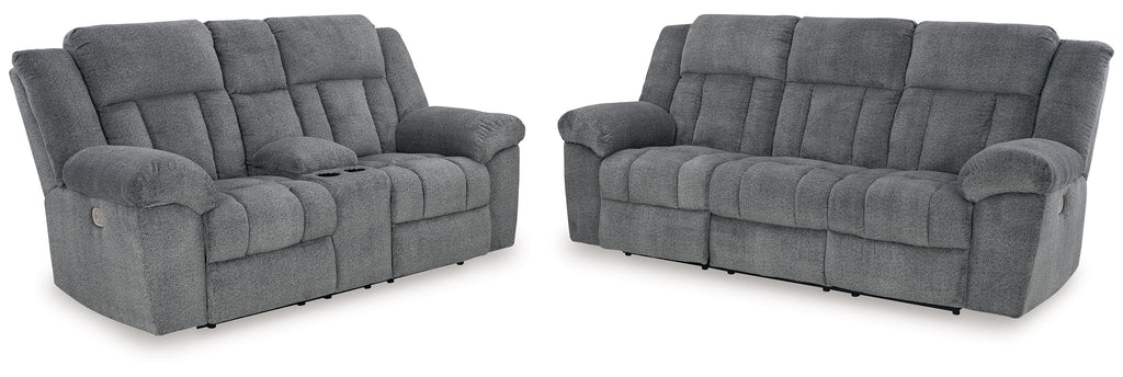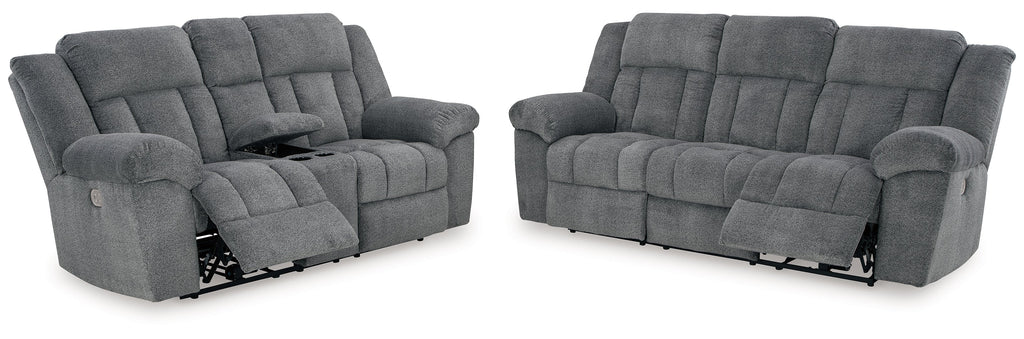 Big, bold comfort. Game time and movie nights meet their match with this power reclining seating package. Made for ultimate indulgence, the extra-deep seating encourages you to sit back and bliss out. And with plush upholstery in a trendy hue, you won’t need to sacrifice style for cozy seating.