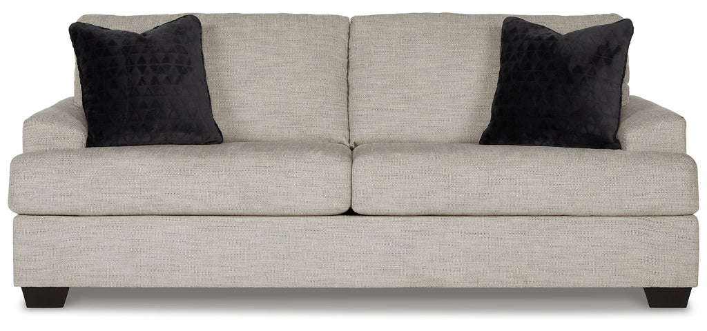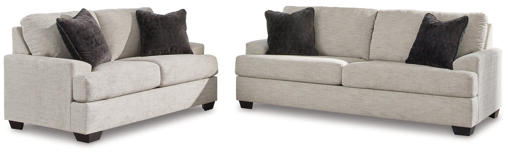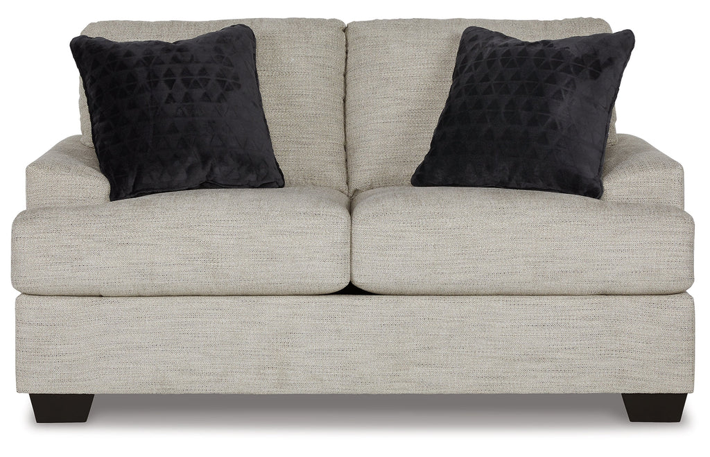 Laid-back luxury meets neutral practicality in this seating package. Taking its cues from contemporary design, the clean-lined set is outfitted with angular arms for a layer of geometric expression. Softly upholstered, sizable cushions keep you comfortable. With these pieces, winning style and superb functionality go hand in hand.