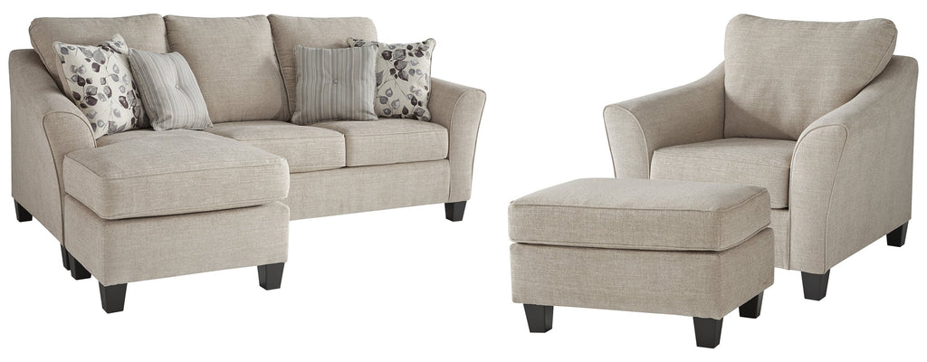 Raising understatement into an art form, this sofa chaise, accent chair and ottoman impress with their tailored silhouettes. Designed in a warm neutral color perfect for any contemporary home, these pieces are wonderfully versatile for a fresh take on living room seating. One look at this sumptuous ottoman, and you’ll know you’ve just stepped up your style.