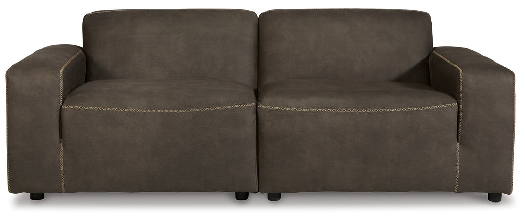 Contemporary fashion meets streamlined design in the Allena seating package. You'll love the comfort and style of the suede-like fabric and how easily its warm gray hue blends with your decor. Best of all, the modular design lets you stage the pieces solo or group them together to suit your mood.