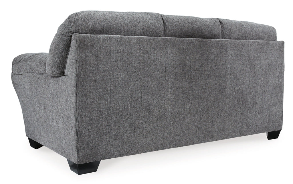 Why sacrifice comfort for style (or style for comfort) when you can have the best of both in this living room set with sofa, loveseat and rocker recliner in pewter gray. Elements include a chic divided-back design and pillow top wrapped armrests that make nodding off all too easy. Calling attention to the elegantly flared armrests—black nickel-tone nailhead trim for a punch of cool character.