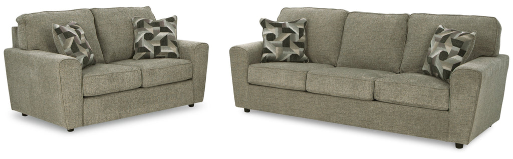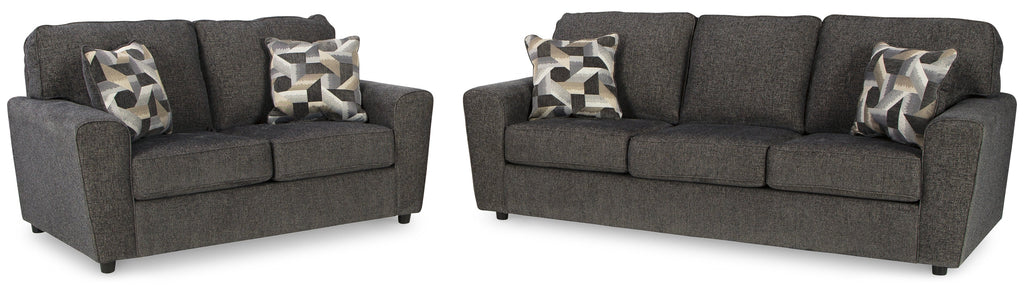 Revamp your sleekly styled living room sanctuary with this sofa and loveseat package. Well-suited to contemporary spaces with a calming neutral upholstery in slate gray, it makes a subtle design statement in your space whether you’re hosting guests or enjoying a night in. Enamoring with its streamlined design, this set is a simply stylish way to sink into superior comfort.