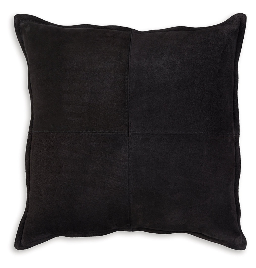 Add casually cool comfort to your couch with this pillow. Its sumptuous suede in a black patchwork pattern with flange is the essence of chic, cozy style.