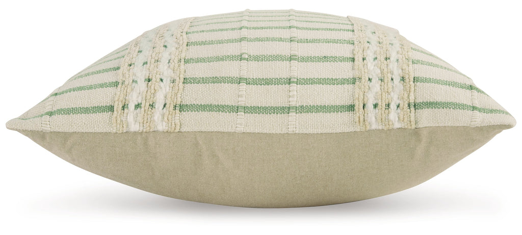 Dress up your sofa or bed with the casual charm of this accent pillow. It's a timeless addition to your decor, with a simple striped pattern that's both classic and modern. The pillow's white, green and natural hues make it beautiful living on its own or layered with others.