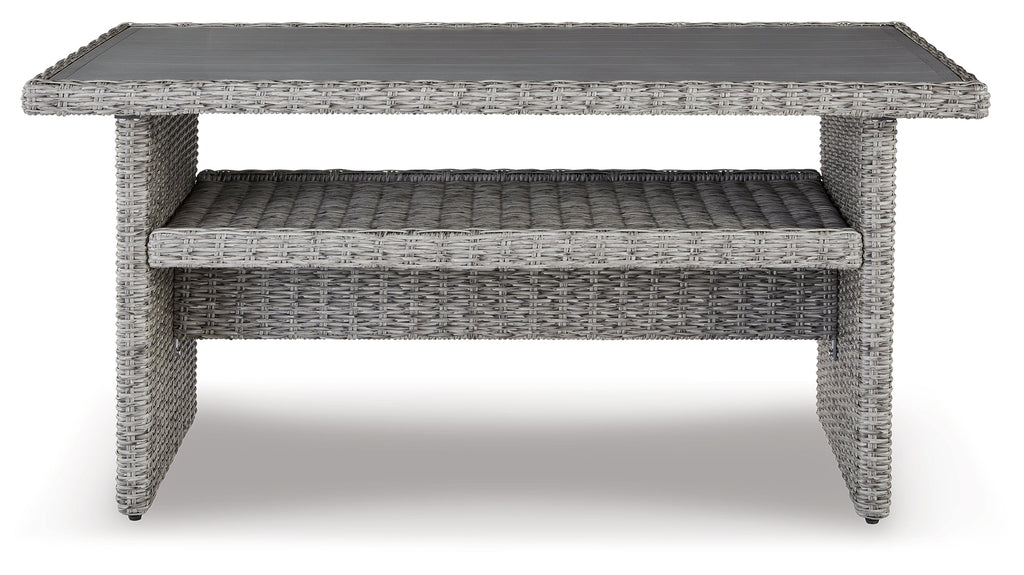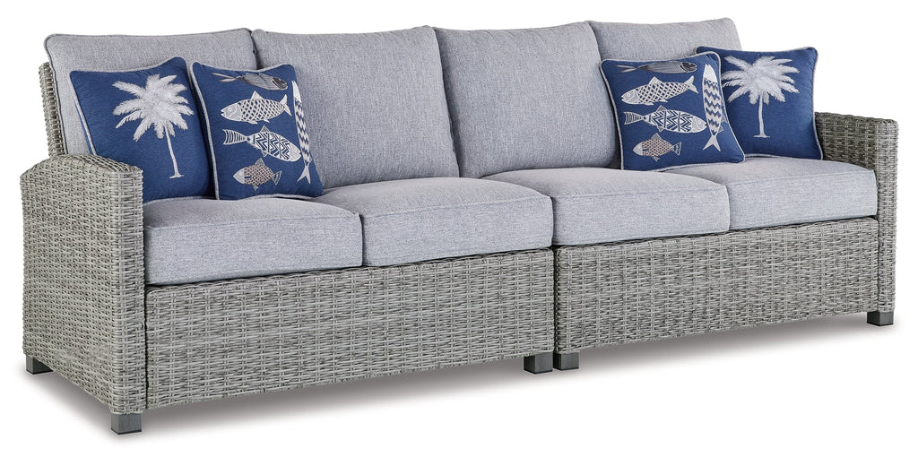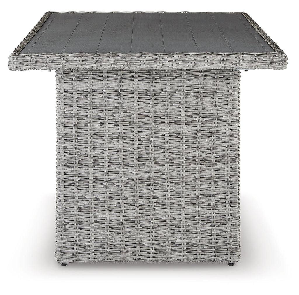 Indulge in backyard bliss. This outdoor sectional has a straightforward sense of style with its light gray resin wicker and wood-look finish. Gray high-performance Nuvella+™ fabric covers the seat and back cushions, weathering the elements and keeping your aesthetic casually cool.