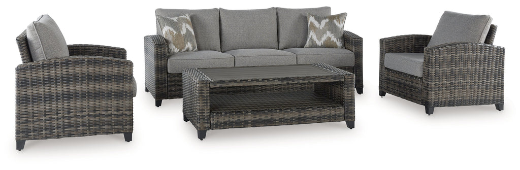 - Includes sofa, coffee table and 2 chairs