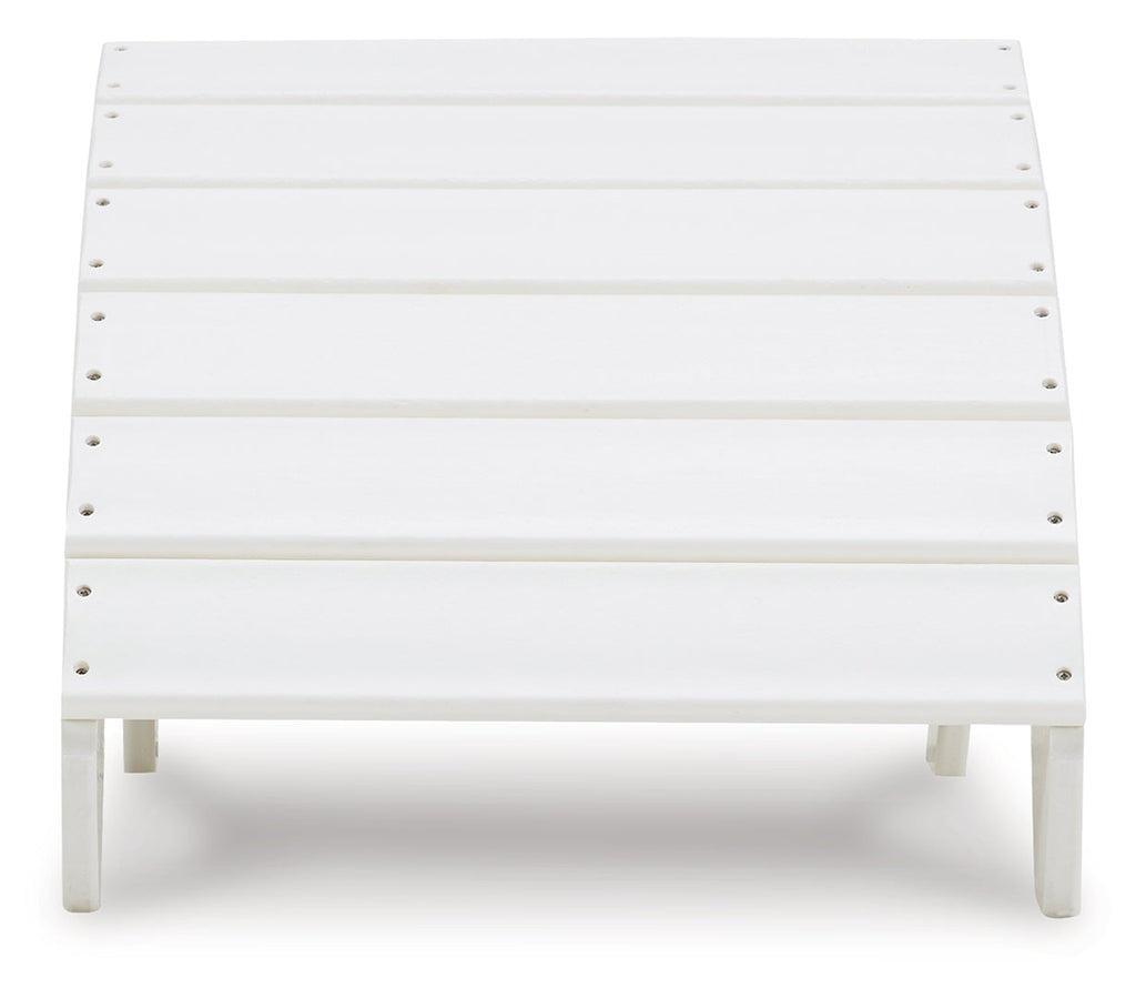 Add cottage-quaint charm to your outdoor oasis with this ottoman in a driftwood finish. Made of MEGA TUFF™ high-density polyethylene material, it’s sure to weather the seasons beautifully. The ottoman's slatted styling with sloped shaping provides exceptional form and function.
