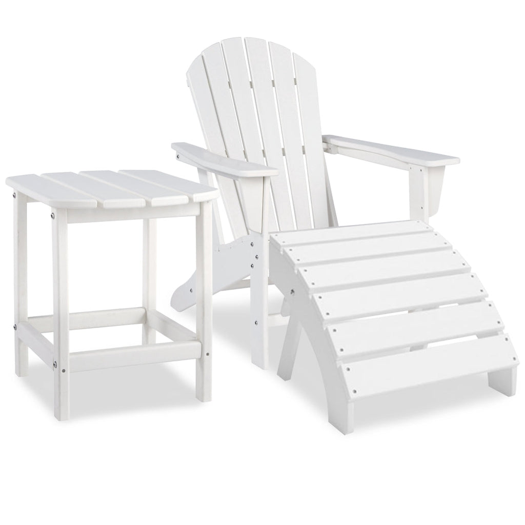 Add cottage-quaint charm to your outdoor oasis with this white outdoor seating package. Made of MEGA TUFF™ HDPE material, it’s sure to weather the seasons beautifully. Slatted styling with sloped shaping provides exceptional form and function.