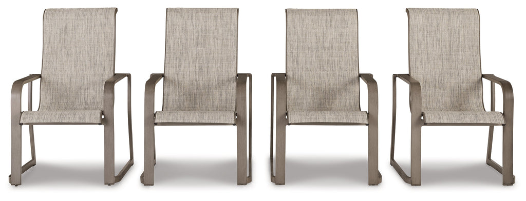 Balancing effortless natural beauty and minimalist design, this sling arm chair seamlessly brings your contemporary style outdoors. Sporting a sled base design and wood-look finish, it entices with a fresh-feeling neutral sling fabric over the high back. This sleek yet durably made chair refines the art of relaxed outdoor living.