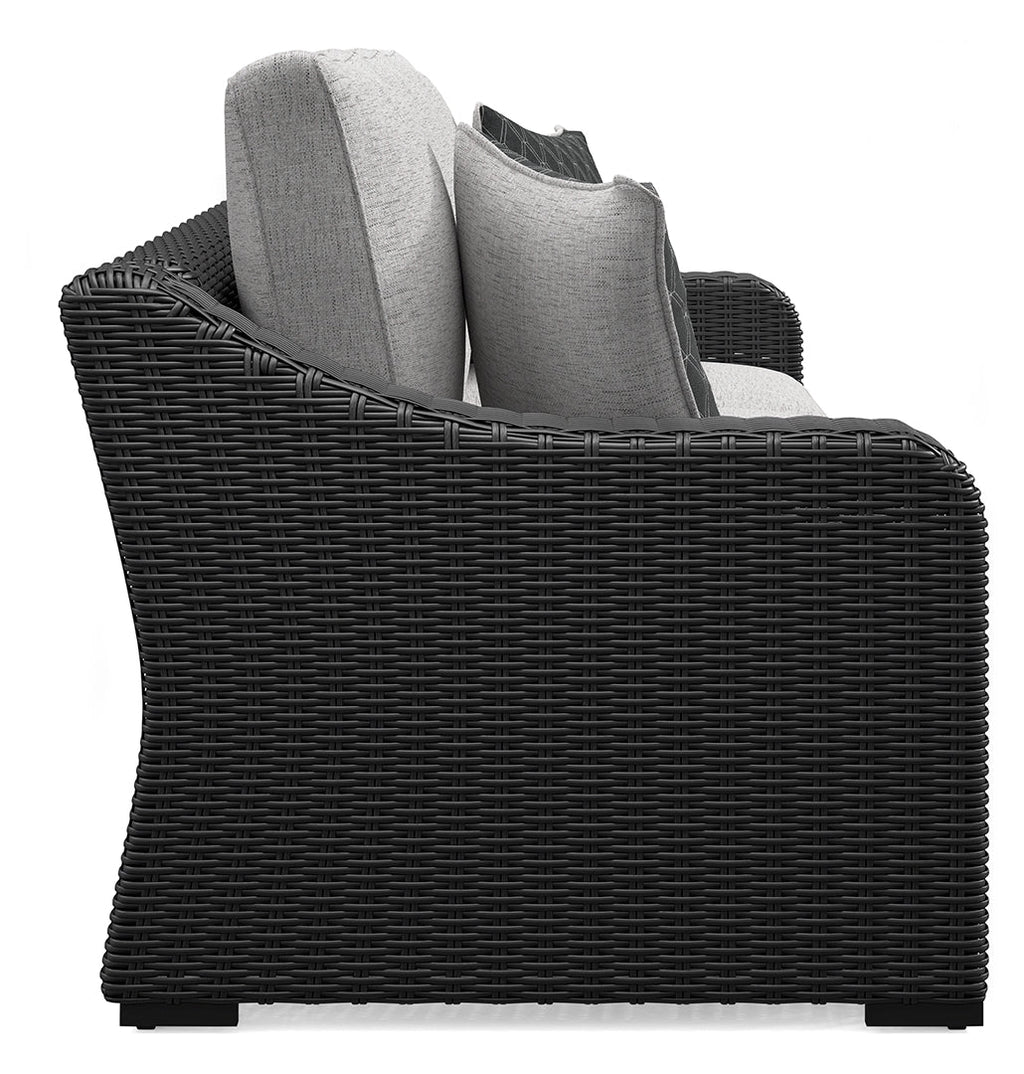 Sporting an easy-on-the-eyes elegance, this entertaining package elevates the art of alfresco living. Beautiful and durable enough for indoor and outdoor use, the high-style/low-maintenance set entices with plush, removable cushions wrapped in Nuvella® fabric that’s a breeze to keep clean.