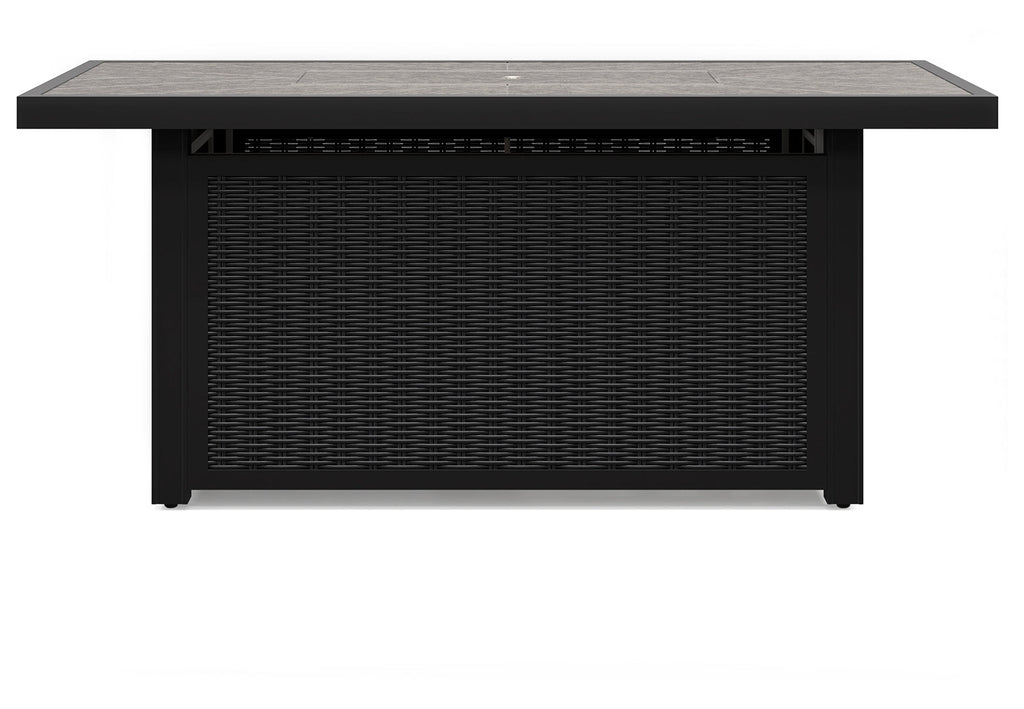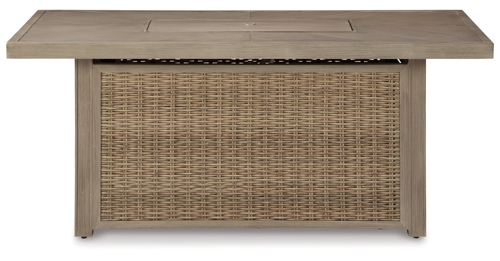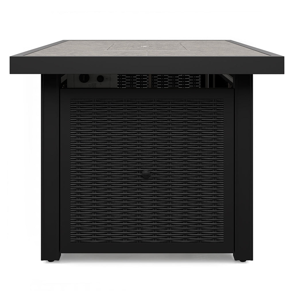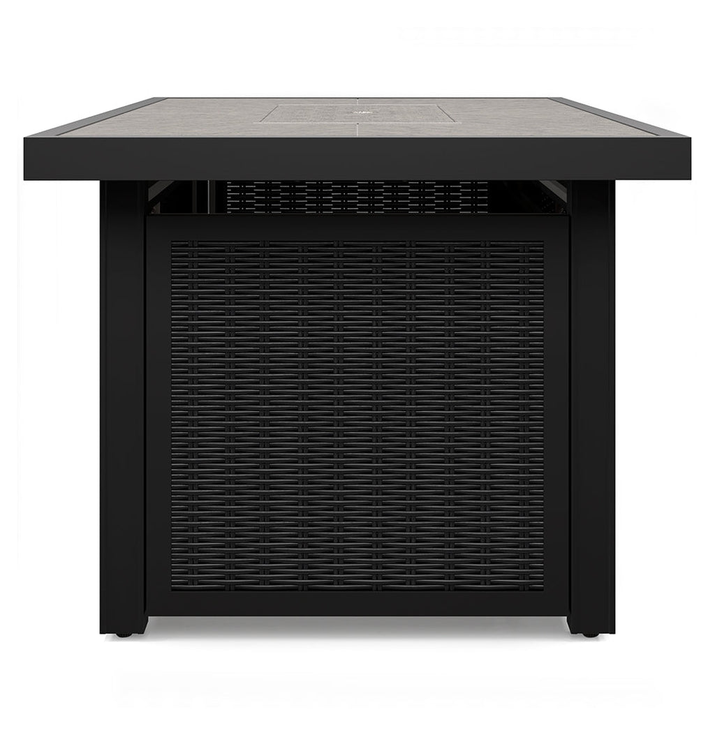 Sporting an easy-on-the-eyes elegance, this fire pit table elevates the art of alfresco living. Its handpainted top is paired with all-weather resin wicker over rust-proof aluminum for beauty and brawn. A stainless steel burner with glass beads adds a captivating element that is sure to wow.