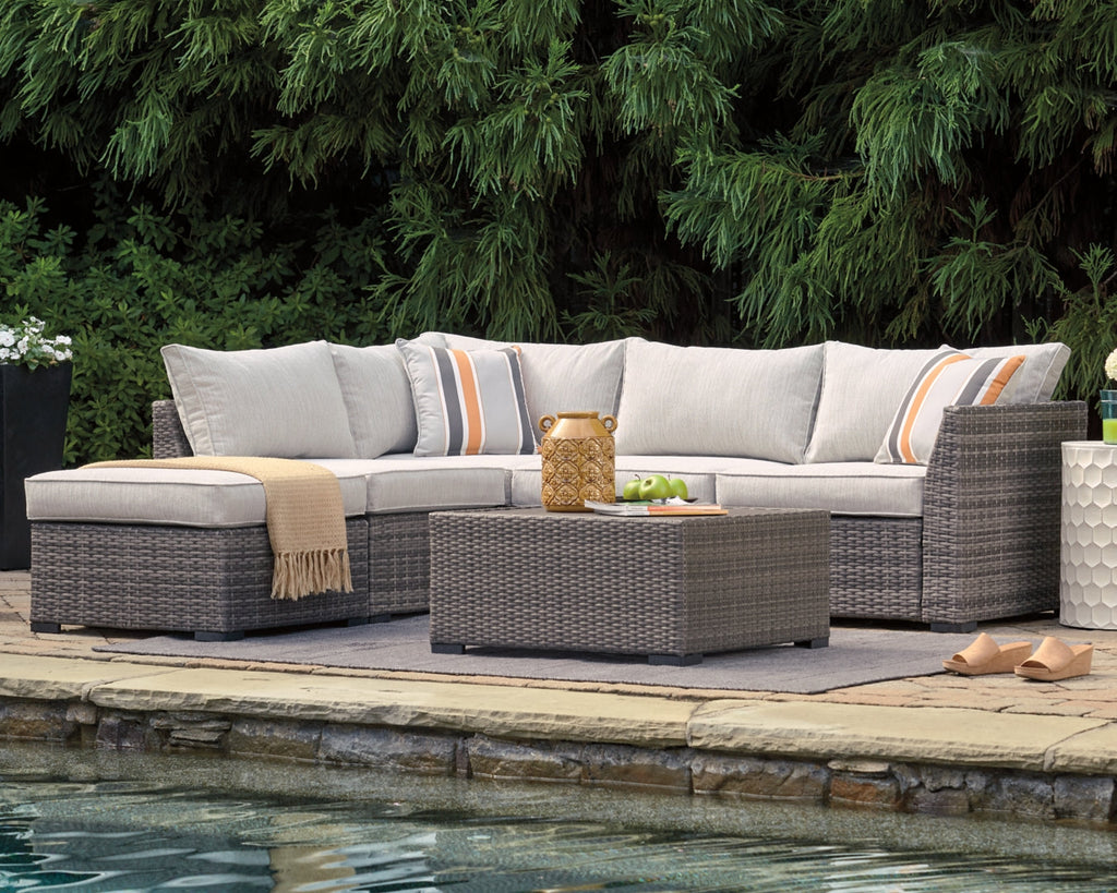 Turn your outdoor space into a sweet retreat with this 4-piece outdoor sectional. High style crafted for low-maintenance living, this decidedly clean and contemporary outdoor furniture set entices in an easy-breezy gray resin wicker over a rust-free aluminum frame for an upscale aesthetic that’s downright durable. Wrapped in high-performing Nuvella® fabric, the plush cushions are indulgently comfortable yet so carefree.