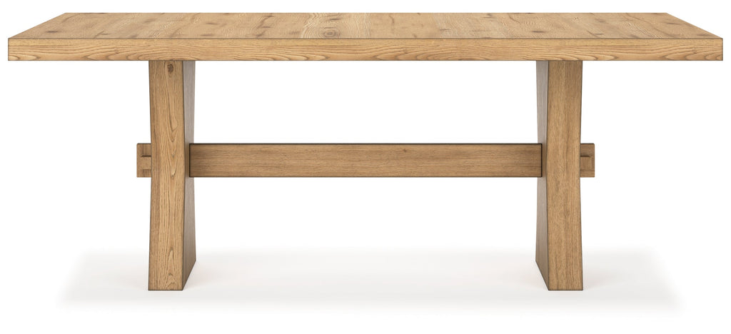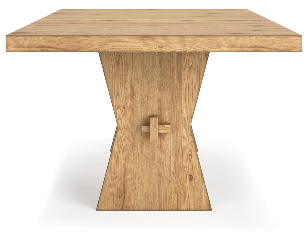 This dining table expertly refines the raw beauty of wood, bringing a rustic vibe to urban contemporary design. It creates an organically beautiful feel in your dining room—an extra-thick tabletop spotlights the unique, natural details of the wood. And the stunning simplicity of the materials allows you to seamlessly coordinate this table with your existing decor.