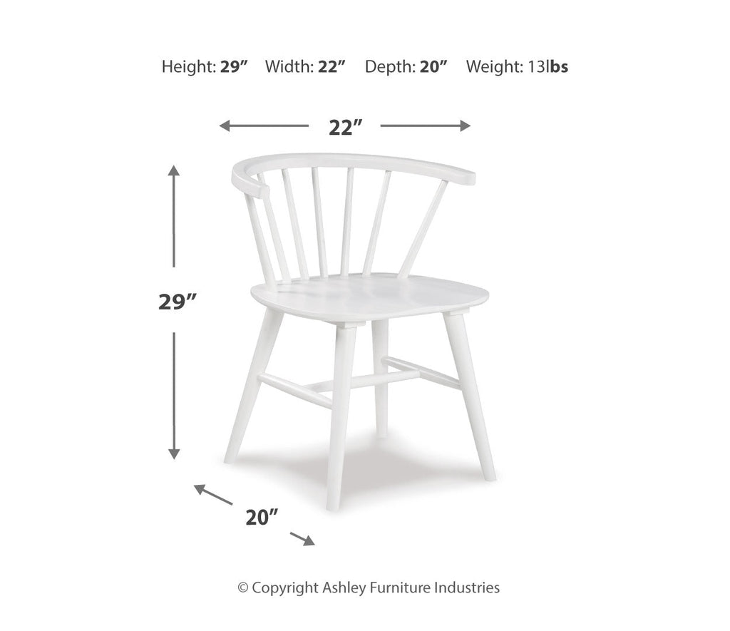 Bring light to your dining area with clean lines and a bright, white finish. The dining room chair sports a low spindle back with turned legs for beautiful simplicity. This functional piece marries minimalism with big style for a delightful combination.