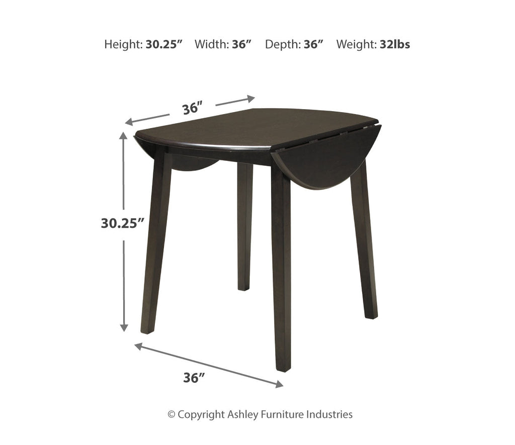 You might be short on space, but you can still long for style. If contemporary tantalizes your taste buds, savor the beauty of this sleek drop leaf dining table. Dark and dramatic, it packs plenty of appeal into a compact design.