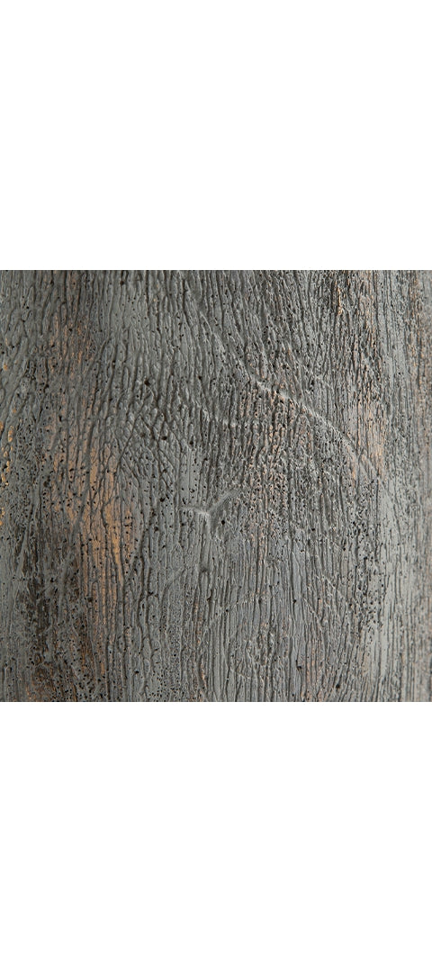 Simplicity at its finest. Antiqued gray and goldtone combine with a unique curved mouth to create this vase’s artisan approach to style. Allow the piece to make a solo statement, or use it to display beautiful seasonal blooms.