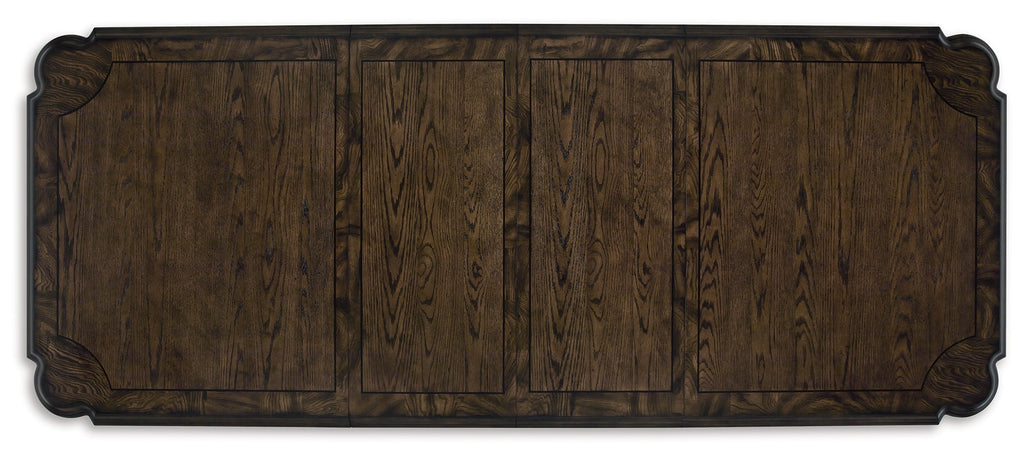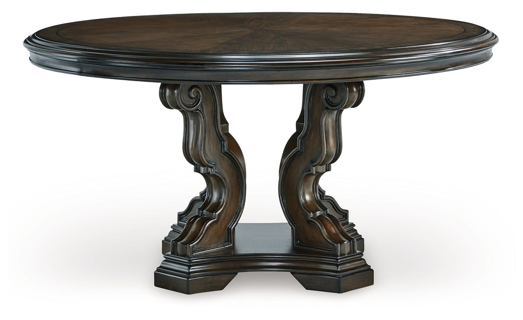From its ornamental appliques to its large scale, this dining extension table makes a bold statement. With a shapely tabletop that sits upon a double pedestal base, the opulent piece wows with stunning style. The look is timeless. The feel? Right at home.