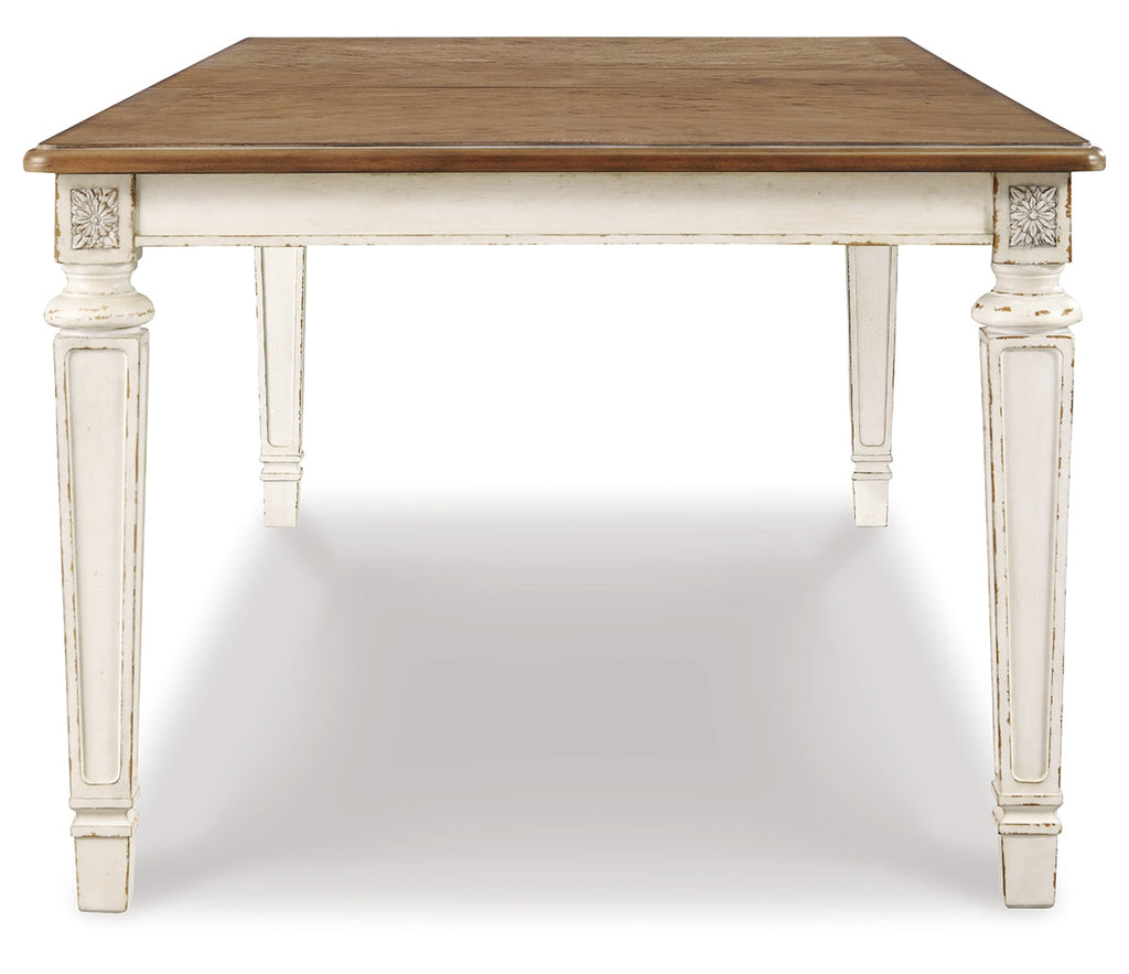 Bon appétit. This dining room extension table has all the right ingredients for a French country-inspired feast for the eyes. Antiqued two-tone aesthetic pairs a chipped white with a distressed wood finished top for a double serving of charm. Drop-in leaf allows you to comfortably accommodate eight.