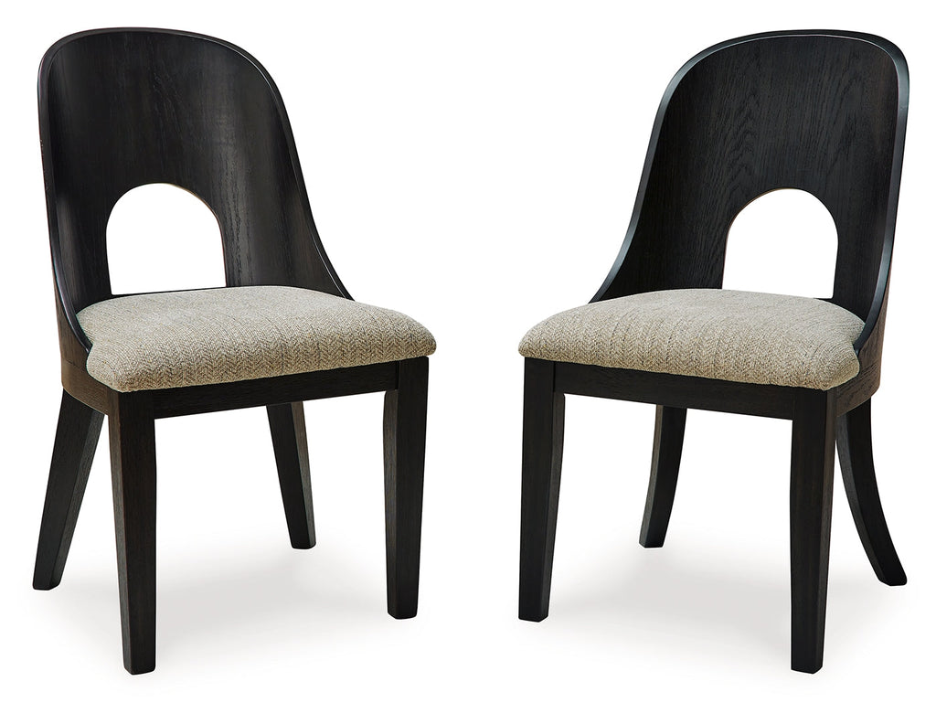 Inspired by art deco design, this dining chair makes a lasting impression in a simply stunning way. Its magnificent curved silhouette is enhanced with a rich layered black finish on the textured wood grain surface. The chair's ultra-sleek bent back is contoured for comfort, and the cushioned seat is wrapped in herringbone-patterned upholstery that’s so pleasing to the palate. This is the piece you’ve been seeking to elevate your contemporary decor whether you’re dining, listening to your latest playlist or binge-watching with friends.
