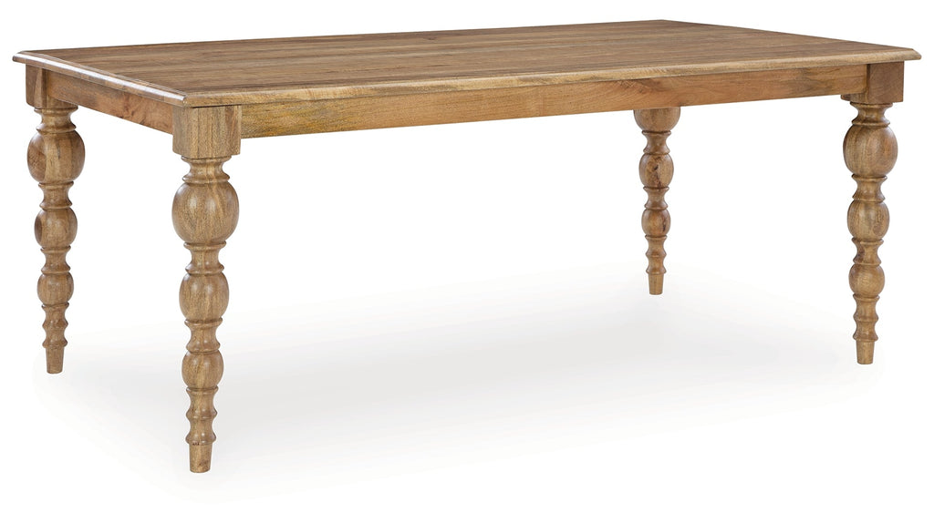 Serve up timeless style with this dining table. Taking a curated approach to casual aesthetics, it’s finished in an inviting light wood tone. For added flair, a substantial tabletop and baluster turned legs round out this trend-right piece.
