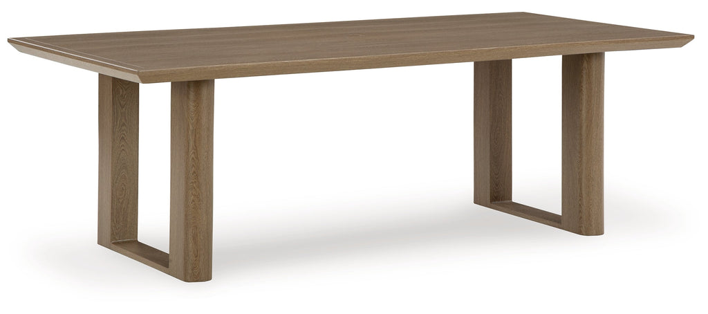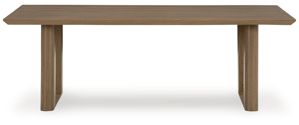 Elevate the appeal of easy-breezy living with this outdoor dining table. Made to look like wood yet durable enough to weather the elements, this rectangular table is sure to serve you and your besties well, year after year. Its cool character is made for warm memories; an umbrella hole offers the option of sweet shade.