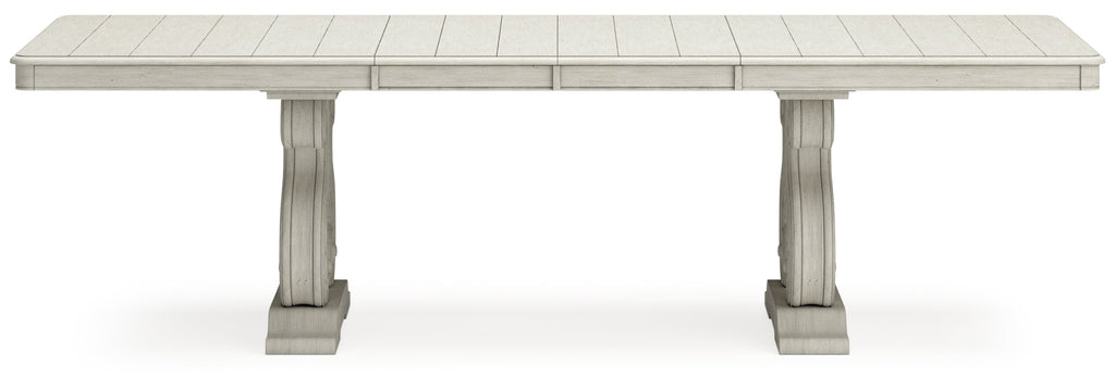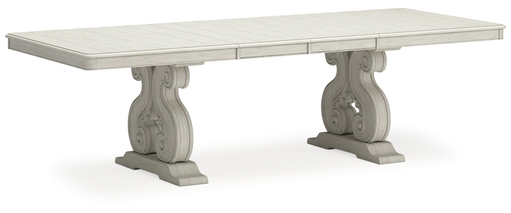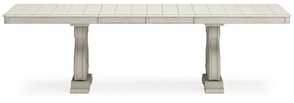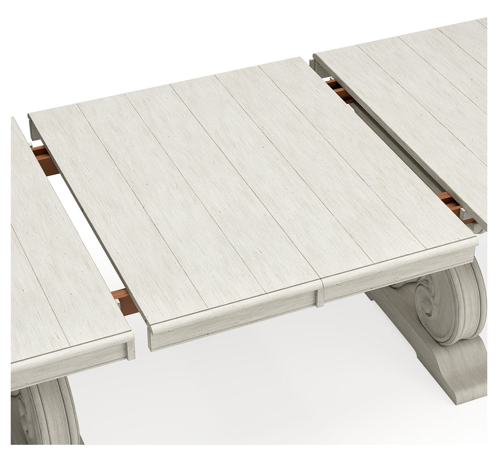 Add a touch of romance to your home with this dining extension table. The painted finish and shapely silhouette are all about easy elegance. Turning the focus on the double sculptural pedestal base, this graceful table adds a dash of upscale luxury to the dining experience.