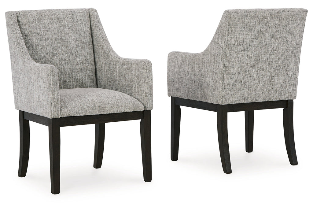 Dressed to thrill, this simply stunning host chair offers a high-design look at a down-to-earth price. Ultra sleek lines are accentuated with a dark waxy brown oak-tone finish that’s so easy on the eyes. Suitably upholstered in a tweed-like neutral fabric, the slope-arm design is tailor-made for comfort. Whether it's part of a dining arrangement or used as extra seating, it has a timeless look that’s made to last.