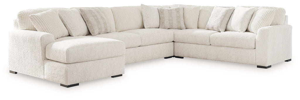 - Includes 2 pieces: left-arm facing corner chaise and right-arm facing sofa