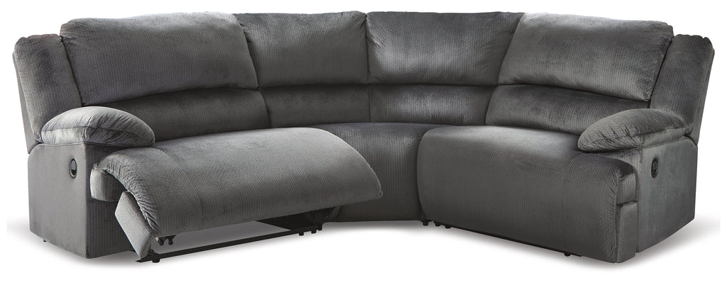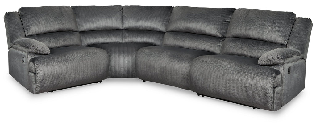 Large-scale comfort is yours with this modern reclining sectional. With supremely padded back, seat and arm cushions, it's the hero for ultimate relaxation. Your guests will love the extra room via the wide recliners. Microfiber upholstery is welcoming, soft and luxuriously covers the extra-wide seats. Recline back and kick up your feet to bolster your comfort level even more. Factor in the handy console with storage, and now you'll have a spot to tuck away the remotes and two convenient cup holders for setting down drinks.
