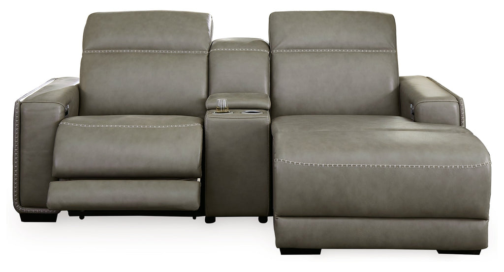 - Includes 3 pieces: console with storage, left-arm facing zero wall power recliner and right-arm facing zero wall power recliner