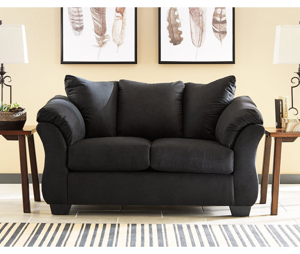 Talk about fine lines and great curves. That’s the beauty of this standout loveseat—made to suit your appreciation for clean, contemporary style. A striking flared frame, comfy pillow top armrests and an ultra-soft upholstery that holds up to everyday living complete this fashion statement.
