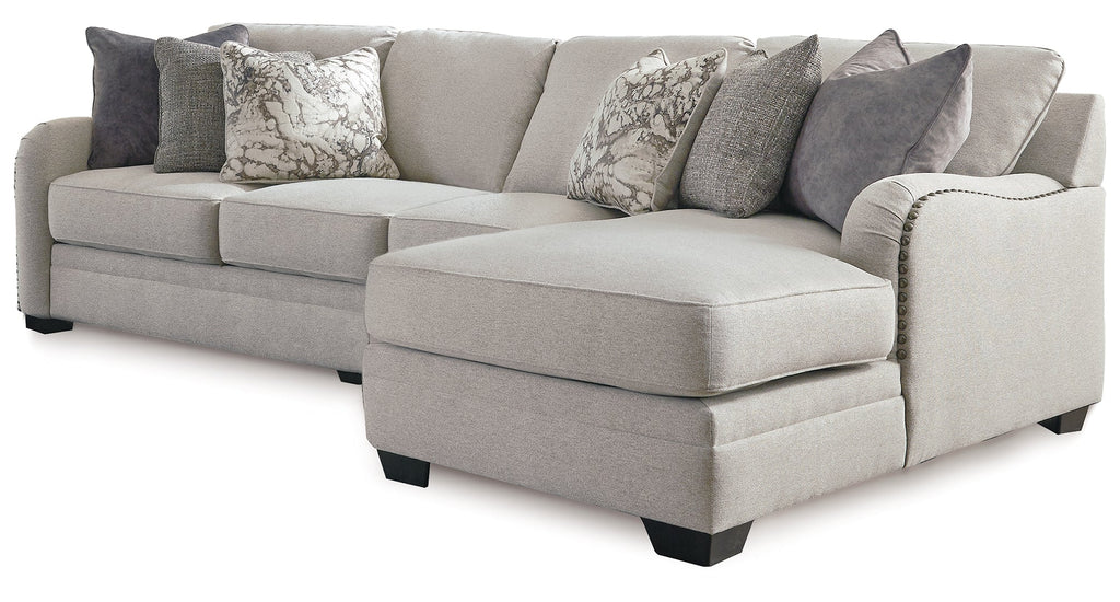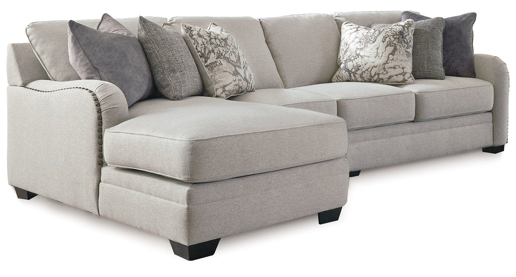 - Includes 2 pieces: left-arm facing corner chaise and right-arm facing loveseat