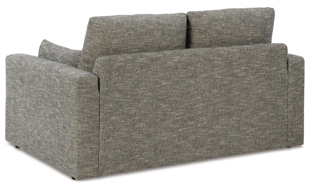 On the days when rest and relaxation seem out of reach, this loveseat provides a positively plush seating experience. Its feather-fiber blend cushions invite you to float away in cloud-like comfort. Striking granite-hued upholstery and a streamlined frame grant this cozy piece a look well-suited to contemporary spaces.