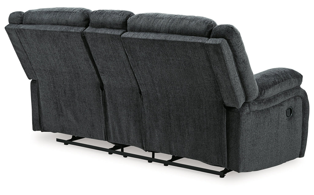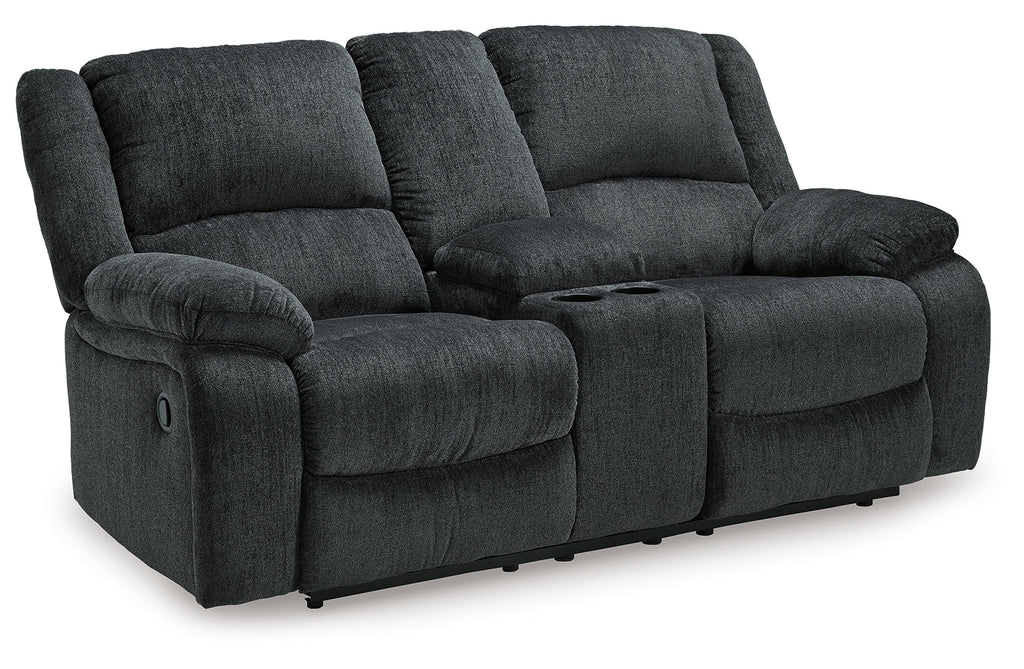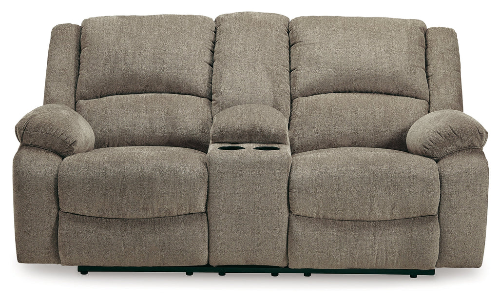Built for luxury, this reclining loveseat with center console lets you kick back in reliable style. The thick, softly textured chenille upholstery provides a comfy surface on which to lounge. With bustle back construction and thickly cushioned armrests, this piece gives you the dependable support you need to unwind with the convenience of the center console to ease your evening.