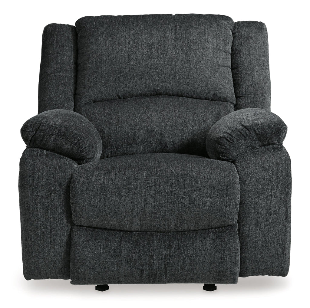 Built for luxury, this power rocker recliner lets you kick back in reliable style. The thick, softly textured chenille upholstery provides a comfy surface on which to lounge. With bustle back construction and thickly cushioned armrests, this piece gives you the dependable, powered support you need to unwind while the handy USB port provides the power to keep your devices going.