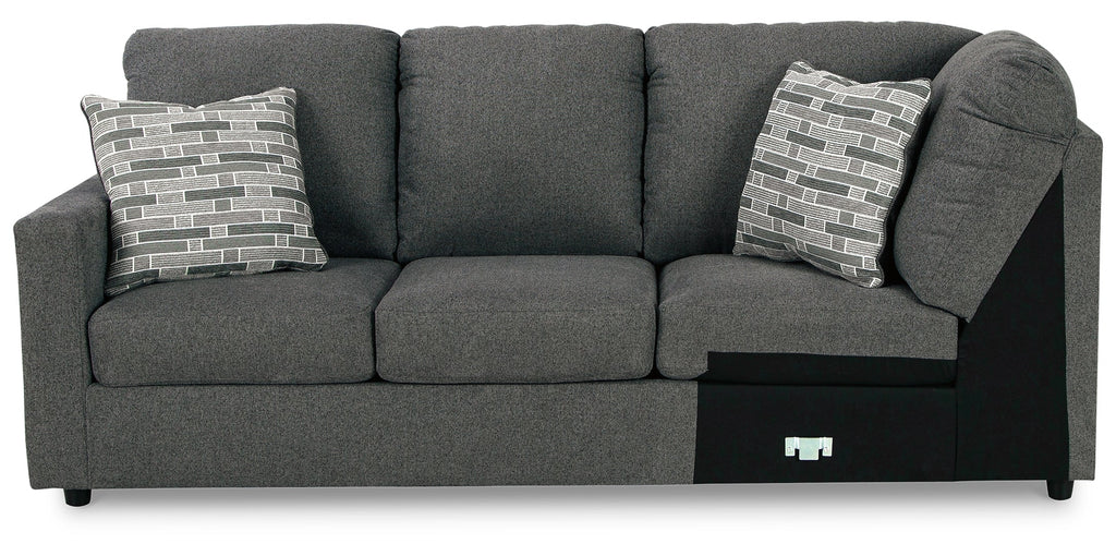 - Includes left-arm facing corner chaise, armless loveseat and right-arm facing sofa with corner wedge