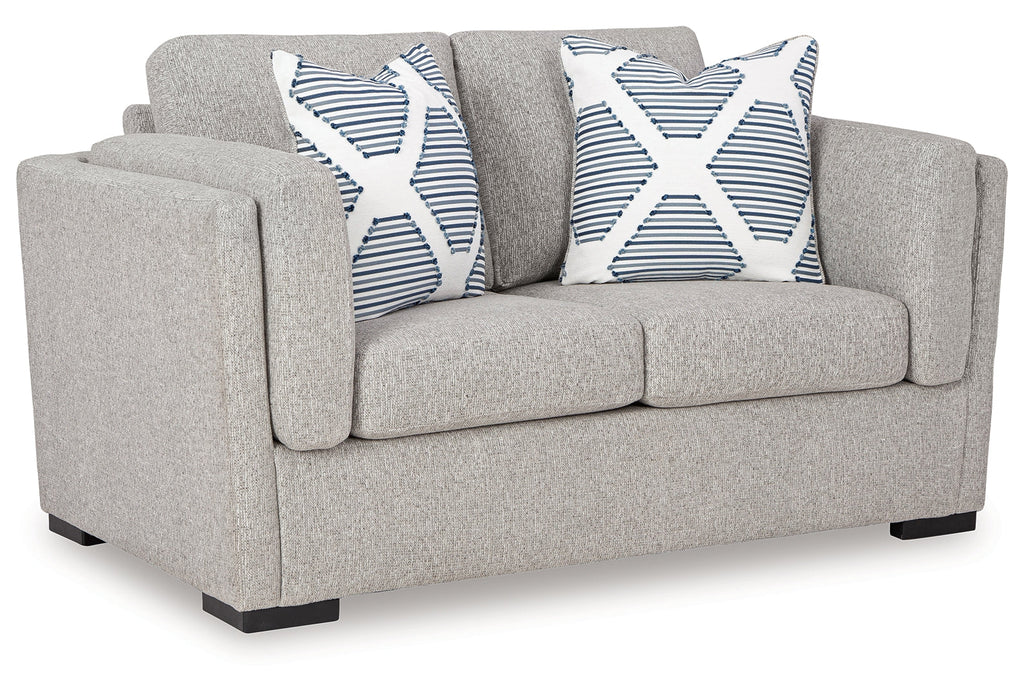 Casual contemporary style, meet carefree lounging. With this loveseat, you don’t need to sweat the small stuff. Thanks to its fresh navy hue, you can stay right on trend when you kick back and relax. And the arm bolster pillows keep you extra comfy. Time for a touch-up? Machine-washable Next-Gen Nuvella™ covers make upkeep a breeze.