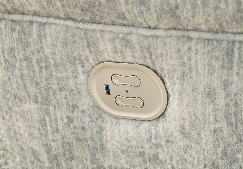 With its sumptuous comfort and designer style, no wonder this power reclining sectional is such a crowd pleaser. Looking for a new twist on neutrals? Then you’re sure to love how this power sectional’s stone-tone padded velvet fabric is delightfully different, yet sure to blend beautifully with countless color schemes. Rest assured, the one-touch power control with adjustable positions includes an Easy View™ adjustable headrest that lets you lay back and still have a primo view of the TV. Zero-draw USB plug-ins at your fingertips keep you powered up as you chill out.