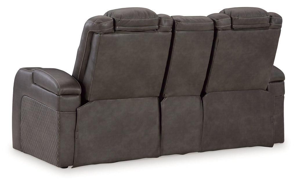 This power reclining loveseat goes beyond basic comfort. It upgrades the everyday, turning your living room into an entertainment hub. Don’t want to leave your seat? Keep essentials in reach with cup holders and storage arms. You can create an even cooler vibe for family movie nights and friendly gaming matches with LED lights. Immerse yourself further with built-in wireless audio connectivity. And your sleek style isn’t compromised—its diamond stitching and streamlined arms recall the aesthetics of luxury automobiles.