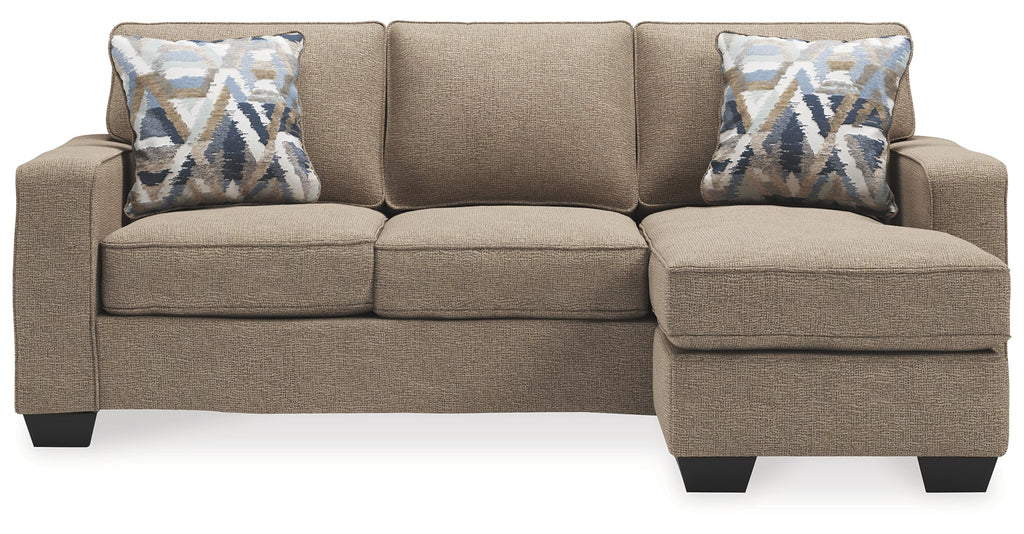 Make your living space that much more livable with this sofa chaise. You’re sure to love its L-shaped design that makes it all too enticing to kick up your heels and relax. The fact that this sofa chaise can be positioned with the chaise on the right or the left only adds to its appeal. And you can rest assured that its ultra-neutral upholstery with a textural chenille feel goes with anything and everything. Wide track armrests, box cushions and tapered feet lend a clean, contemporary aesthetic.