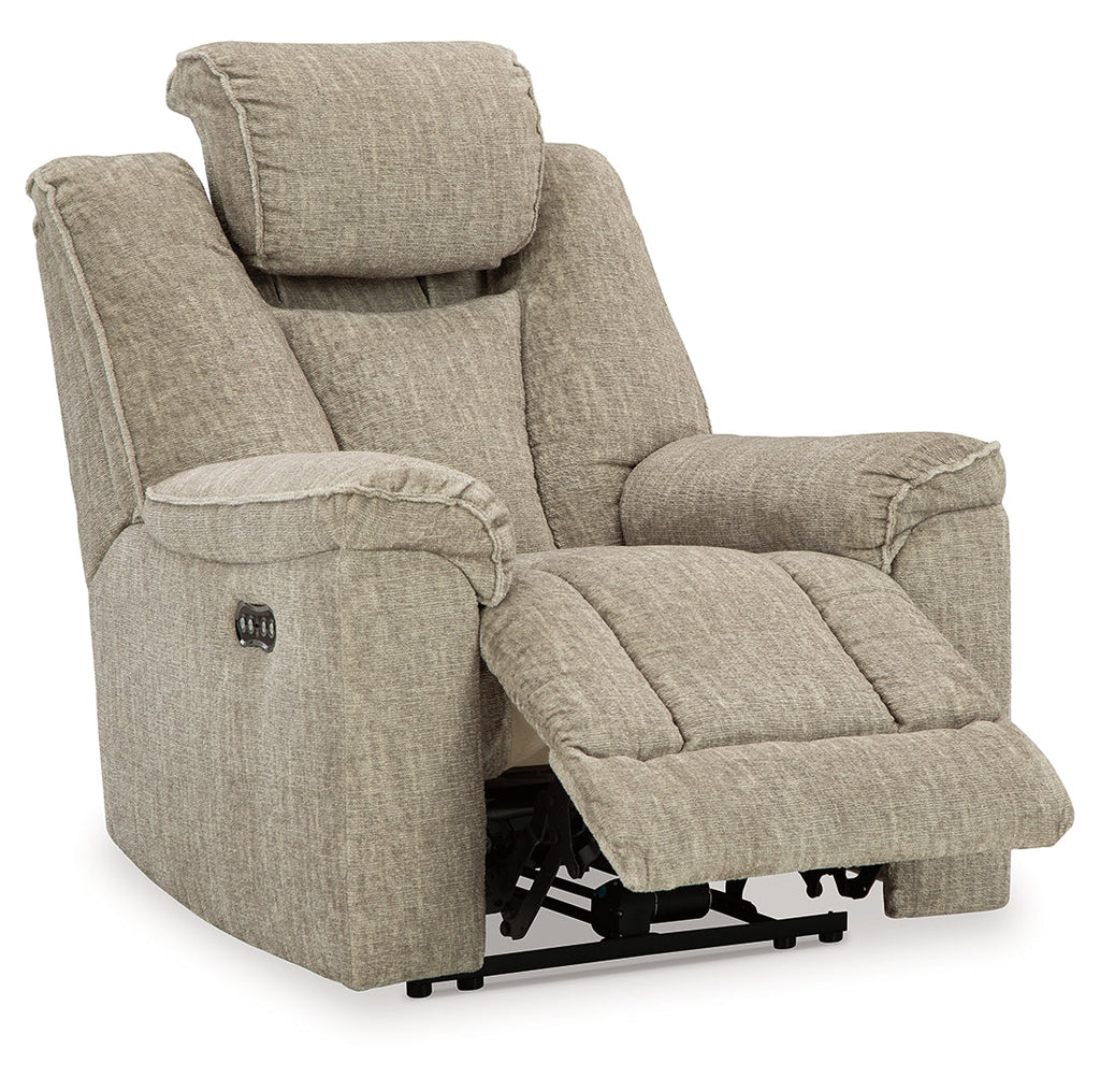 Change can be a good thing—especially when it takes lounging to a whole new level. Covered in high-pile fabric with rich tonal variation, this power recliner cradles you in comfort. And if it’s ambiance and connection you’re after, the recliner sports a blue LED backlight and USB charging to complete the experience.