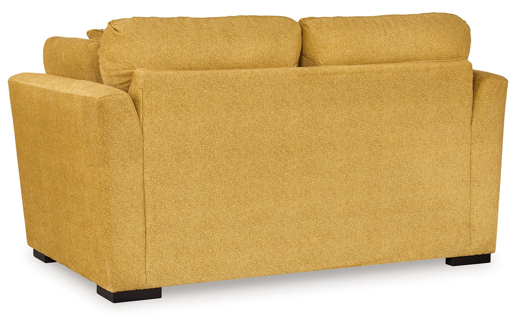 You want your home to reflect your modern, trendy eye for design. This loveseat is here to help. Bold, bright and beautiful, it adds a fashion-forward pop of color to your living room. Velvet-like upholstery and matching bolster pillows keep comfort at top of mind, whether you're lounging around or entertaining guests. How’s that for fresh style and functionality?