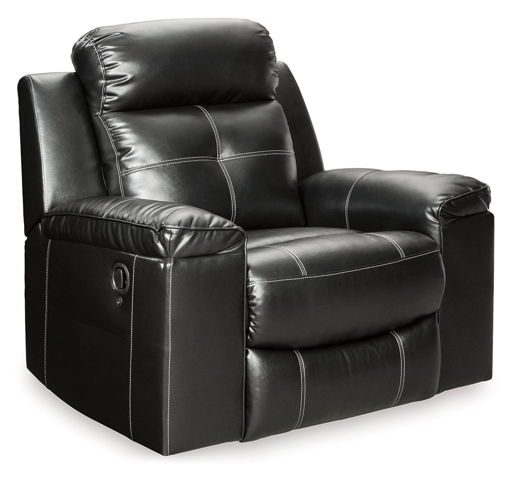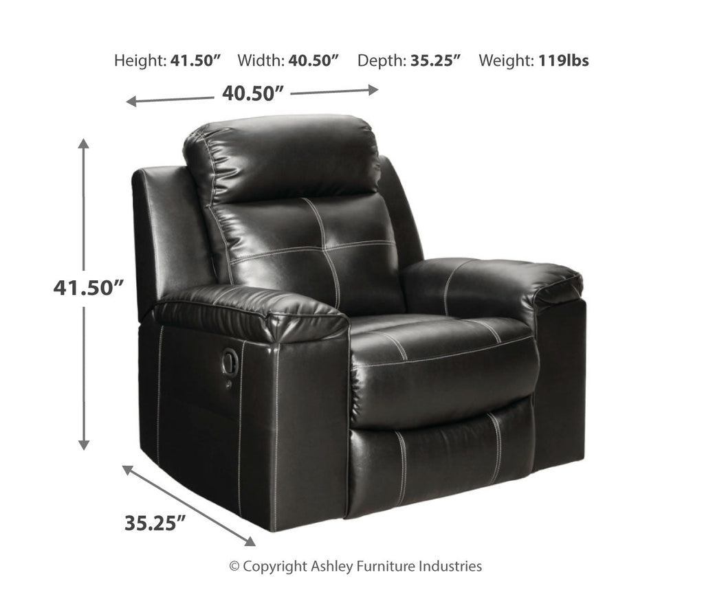 You don’t just want to recline. You want to recline in high design. Wrapped in a fabulous black faux leather upholstery, this rocker recliner with 42" high back is everything you long for—and then some. Ultra clean lines, subtle curves and sumptuous comfort make it a sight for sore eyes and tired muscles. Here’s the showstopper: ambient blue LED lighting along the chair base for a movie theater experience enjoyed from the convenience of home.