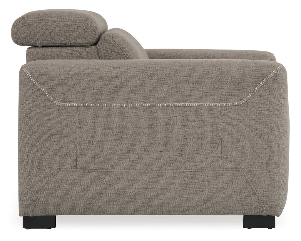 The challenge: Design a cutting-edge power recliner you’d never guess was a recliner. Super sleek and streamlined, this recliner in taupe gray with high-contrast jumbo stitching might just be our best-kept secret. Rest assured, you’d be hard-pressed to find seating that looks so high end yet is so comfortably priced. Integrated elements include an Easy View™ adjustable headrest, which offers low-profile style when it’s down and a high level of comfort when you’re kicking back and reclining. Factor in a one-touch power control (with a USB port) placed on the inside track arm, and you have the makings for one beautifully deceptive piece of furniture.